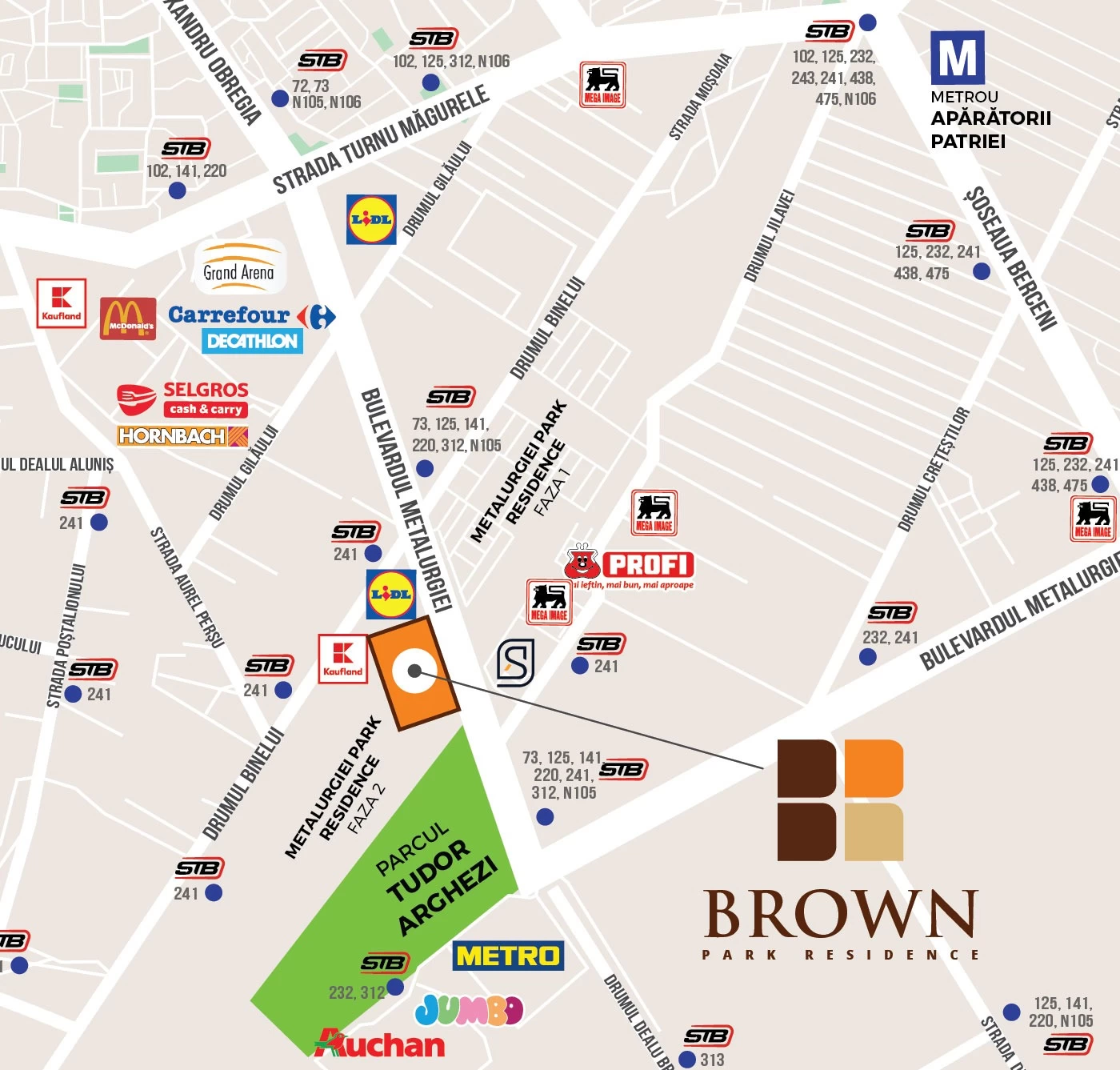 Brown Park Residence face parte din Metalurgiei Park Residence, primul parc rezidential din Romania dezvoltat in Bucuresti, Sectorul 4, pe Bulevardul Metalurgiei!